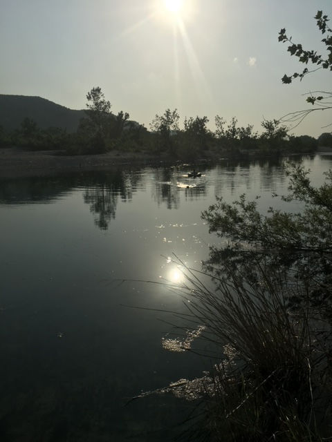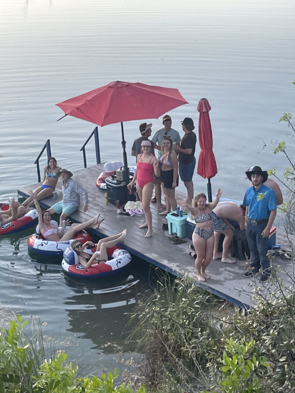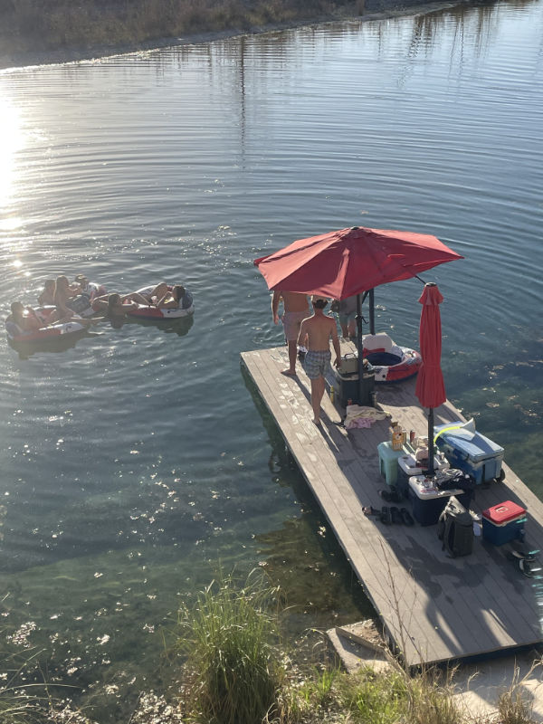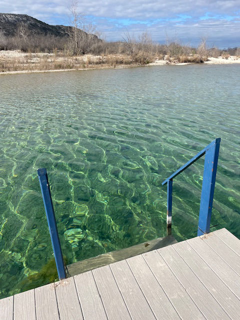 The springs on EldeRio flow into the Nueces river, keeping the same water level year round. Our floating dock sits on 10′ of water. Great for family fun and Cast and Blast dove hunts.