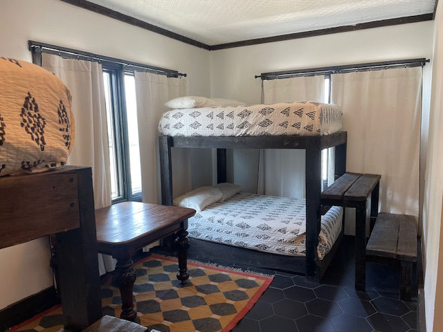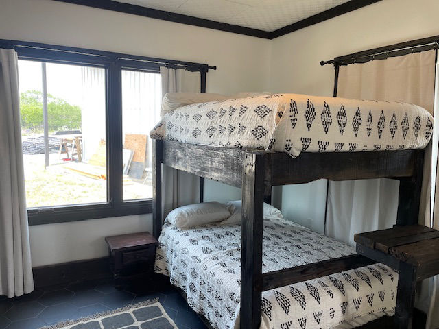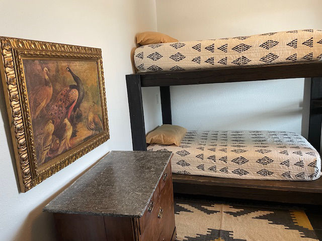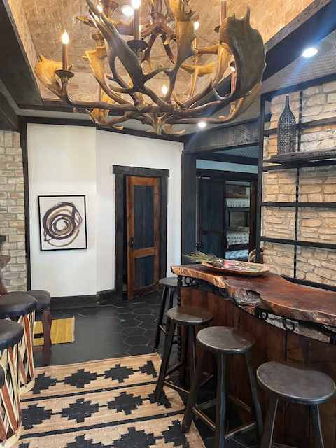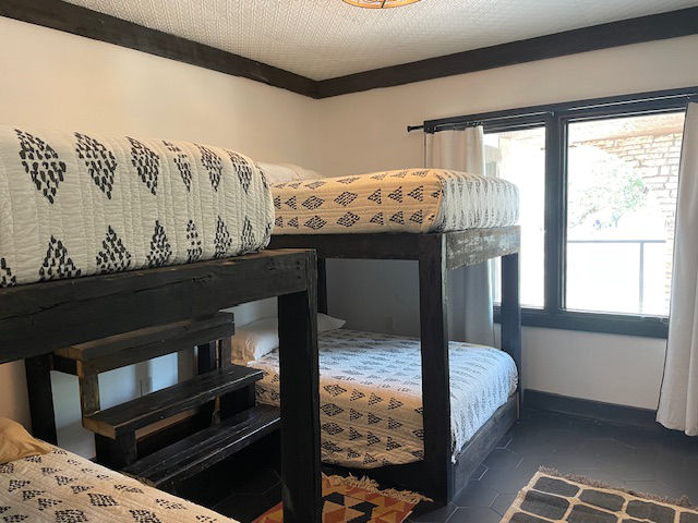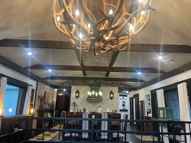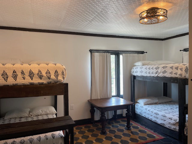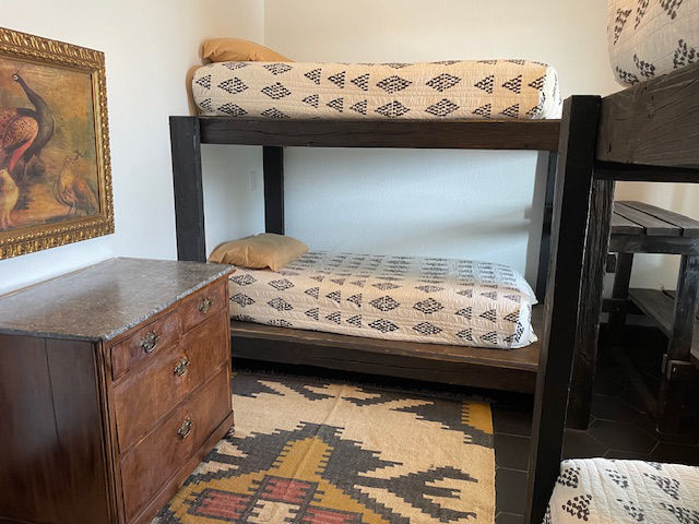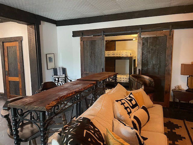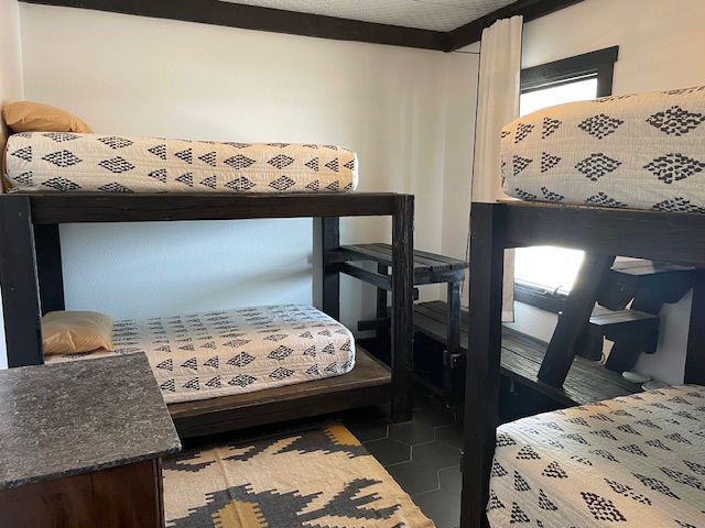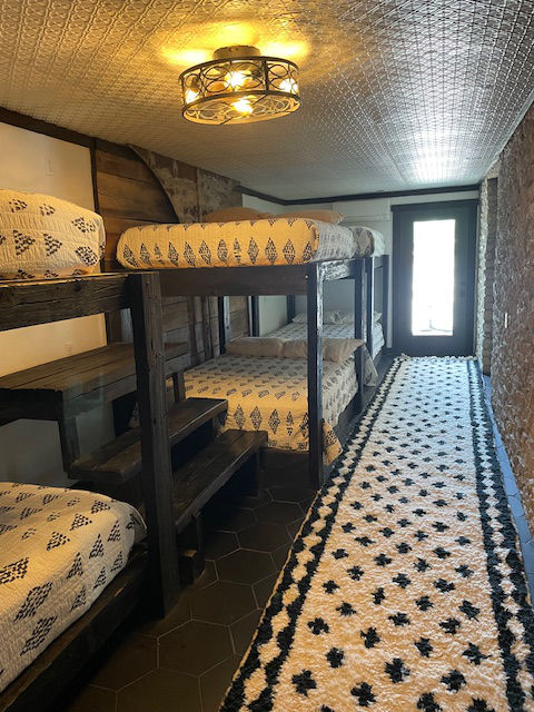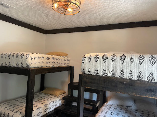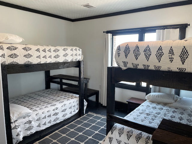 EldeRio lodge has 6 bedrooms and 5.5 baths. 23 total beds with 6 twins and 17 full size beds. Large TV room for college football and a 10’x10′ hot tub.